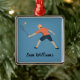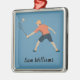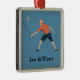 Ornamento navideño metalizado con temática bádminton con texto personalizable.