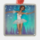 Adorno Metálico Ballerina Pintó Perlas y Árboles Fondo Verde azula