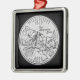 El adorno navideño presenta la versión tintada de la imagen de diseño del trimestre 2002 del estado de Misisipi de la Casa de la Moneda de Estados Unidos (sin circular al revés), con flores de magnolia, sobre fondo negro