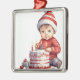 ADORNO METÁLICO BEBÉ PEQUEÑO CUBIERTO VESTIDO EN ROJO CON PASTEL