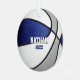 This keepsake basketball ornament for a boy or girl features the realistic image of a basketball that has alternating blue, white and gray panels - personalize the front and back of ornament with year and athlete's name - by katz_d_zynes