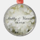El elegante Ornamento Boda de Hydrangea Blanca se puede personalizar con los nombres de la novia y el novio y la fecha de la ceremonia matrimonial. Este elegante ornamento nupcial botánico personalizado presenta una fotografía floral de un florecimiento de una flor de horangea blanca.