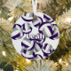 Este ornamento con temática de voleibol se imprime en el frente y en la parte posterior con la imagen de un grupo de voleibol de tamaño variado morado, gris y blanco - personalizar con el nombre del atleta en el frente y año conmemorativo en la parte posterior - de katz_d_zynes