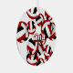 Este ornamento con temática de voleibol se imprime en la parte delantera y trasera con la imagen de un grupo de voleibol de tamaño variado rojo, negro y blanco - personalizar con el nombre del atleta en la parte delantera y año conmemorativo en la parte trasera - de katz_d_zynes
