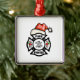 Regalos de Santa del bombero e ideas del regalo para los bomberos del navidad y el gorra rojo de los bomberos de Santa femenino de las características, símbolos del tema del departamento del fuego, muérdago y bastones de caramelo con el amor contraincendios de los días de fiesta.