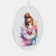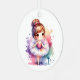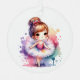 Ornamento navideño personalizado con adorable bailarina acuática con pelo castaño y ojos chica caucásico y un mensaje personalizado en la parte posterior con borde dorado bonito.