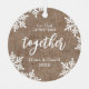 Los adornos personalizados de la primera Navidad incluyen un guión elegante y a la moda y copos de nieve sobre el fondo rústico de las toronjas, fotografía opcional de la pareja en la parte posterior, moderna y sencilla.