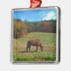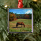 Adorno Metálico Caballo marrón rojo, árboles caídos, cielos azules