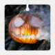 La cabeza de la calabaza Jack-o-Lantern se está asando sobre las brasas calientes de una fogata en Halloween. La cabeza humeante del hombre de calabaza te sonríe mientras se cocina vivo. Tomada por Benjamin Balazs y puesta en Creative Commons CC0.