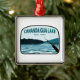 El lago Canandaigua es el cuarto más grande de los lagos Finger en Nueva York y es conocido por sus increíbles bodegas, pesca de truchas, así como acampadas, caminatas y paseos en bote. Este diseño es un contorno de peces con una hermosa escena lacustre de azul.