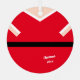 El traje rojo de Santa, adornado en blanco y negro... muestra el nombre de tu ser querido. En la parte trasera está la frase "Navidades 20xx" en blanco.