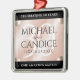 ¡Celebre el 30º aniversario de bodas de perla con este ornamento conmemorativo! La elegante letra negra y blanca sobre un fondo rosa perlescente con incrustaciones de perlas añade un toque memorable para esta ocasión especial y este hito extraordinario. Personalice con los nombres de la pareja, las fechas de la boda y mensajes de felicitación.