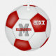 Este fresco ornamento de fútbol para un chica o niño presenta un gráfico de fútbol en el que se puede personalizar el nombre, monograma y año conmemorativo del atleta - los paneles negros del gráfico de la pelota de fútbol han sido coloreados en rojo - de katz_d_zynes