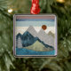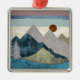 Paisaje moderno con colores y patrones únicos que muestran un paisaje montañoso con un horizonte rayado.