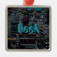Ornamento cuadrado premium con una imagen de circuito de computadora y el sentimiento de personalizable "Geek" impreso en letras verde azuladas. Vea toda la colección This & That Ornament en la sección HOME.