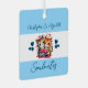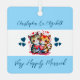 Ornamento metalizado de dos lados. Una idea de regalo de aniversario para tu esposa. Personalizar con nombres. Con gatos lindos y corazones amorosos con texto azul. Compañeros de almas / muy felizmente casados