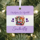 Ornamento metalizado de dos lados. Una idea de regalo de aniversario para tu esposa. Personalizar con nombres. Con gatos lindos y corazones amorosos con texto morado. Compañeros de almas / muy felizmente casados