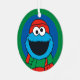 Keep your Christmas tree warm and cozy with this charming Cookie Monster ornament! The ceramic keepsake features everyone's favorite fuzzy blue monster bundled up for winter, wearing a cheerful red beanie and a green and red striped scarf. Set against a bold blue and green background, this design is perfect for the holidays. This ornament is typically fully customizable with a name and year on the back, making it a great personalized gift, yearly keepsake, or stocking stuffer for any Sesame Street fan!
