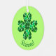 Celebre el Día de San Patricio o cualquier ocasión celta con este adorno de Shamrock que presenta un shamrock hecho de corazones verdes en el frente, y una Bendición Irlandesa al revés. Mensaje de personalizar a cualquier nombre o frase, o salir como está ("a su salud"/"Saludos").