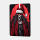 Un gótico fresco / punk / rock / cráneo estilo grunge cabeza Santa Claus al estilo personalizado anime. Tiene un sombrero de Santa, largas cadenas y una elegante chaqueta de cuero rojo. Pueden ver sus picaduras fuertes y musculares a través de su camisa negra. Tiene un resplandor rojo espeluznante en el ojo. Es como un zombi zombi de cráneo de Krampus. Feliz Navidad, Felices Fiestas y un Feliz Año Nuevo!