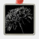 Esta foto blanco y negro ofrece un crisantemo en la plena floración.