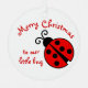 Este caprichoso adorno navideño tiene una linda mariquita roja y negra y dice Feliz Navidad a nuestro pequeño insecto. Agregue su nombre y mensaje de personalizado en la plantilla para personalizar fácilmente. Hay espacio en la parte de atrás para añadir tus nombres y el año. Puede cambiar el estilo o color de la fuente o agregar sus propias palabras. Asegúrese de que todo encaja en la zona segura antes de solicitarla para imprimir. Perfecto para una niñita, jardinero, amante de los insectos, o para cualquiera a quien le gusten los insectos o los insectos. Dale una a tu hija para que cuelgue del árbol de Navidad. Vea otros diseños y productos divertidos de mariquita y animales, incluyendo etiquetas de dirección de retorno, sellos de goma y estampillas con tinta propia, en el lápiz de Alina.