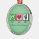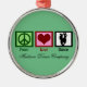 Un signo de la paz, corazón, y un par que participa en una danza. Ornamento del navidad de la danza del amor de la paz personalizado con su nombre o texto de compañía.