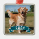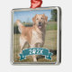 Adorno Metálico Custom Pet Photo with Year and Paw Ribbon