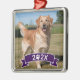 Adorno Metálico Custom Pet Photo with Year and Paw Ribbon