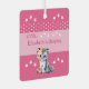Ornamento metalizado de dos lados. Una idea de regalo para un recién nacido, con un bonito leopardo, estrellas y puntos de polka. Personalizar con un nombre / shhh 'nombre del bebé' está durmiendo. La frase 'Sweet Dreams' está en la espalda. Rosa y blanco.