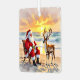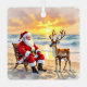 Adorno Metálico Cute Santa on Beach with Reindeer Personalized