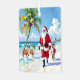 Adorno Metálico Cute Santa on Beach with Reindeer Personalized