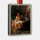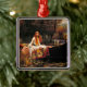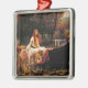 Ornamento con la pintura al óleo de John William Waterhouse La Señora de Shalott (1888). Una hermosa mujer con un vestido blanco escapa en un bote de su destino para ver todo el mundo a través de un espejo y tejer un tapiz de él, pero al ver al príncipe Lancelot, la maldición sigue a la Señora de Shalott hasta su muerte. Los colores otoñales brillantes pintan esta escena trágica. Un regalo impresionante para los entusiastas de la Arthuriana y los coleccionistas de pre-Raphaelita.