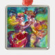 Diseño colorido, elegante y vibrante de la bella arte con los bailarines románticos del carnaval: La danza caprichosa figura, mujer rubia hermosa en trajes chispeantes emplumados está bailando con un Harlequin joven. Pintura de la acuarela en rosa brillante, fucsia, verde, rojo, azul, colores amarillos, las chispas del oro inspiradas de la comedia del arte (dell'arte de Commedia) y el carnaval de Venecia. Es también un regalo hermoso para el navidad, día de fiesta, ocasiones especiales, fiestas de cumpleaños, bola de mascarada de la Noche Vieja, el día de San Valentín.