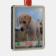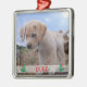 Dog Christmas ornaments (metal premium square ornament) with your custom text and photo - you can add your dog's photo and name. It measures 2 inches by 2 inches and weights 1.5 ounces. You can find similar design with personalized photo and text on other ornaments too - ceramic, pewter snowflake or on ceramic ball ornament.