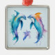 Ilustracion abstracto con dos lindos delfines azules con manchas naranjas y moradas