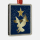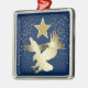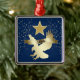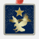 ¡Aquí hay un adorno patriótico de Navidad que es único! Cuenta con una estrella dorada encima de un águila dorada de silueta brillante que está a punto de aterrizar. Al otro lado del águila hay un cartel de oro que dice Estados Unidos. El confeti dorado Purpurinoso decora los lados izquierdo y derecho, y todo está colocado sobre un fondo azul oscuro.
