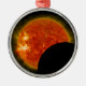 La sombra oscura de la luna se cruza frente al sol durante un eclipse solar capturado en el espacio y mejorado en esta imagen.