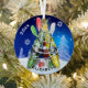 El original ornamento del árbol de Navidad Kayak, recientemente actualizado con nombre y año de personalizable, con festivos kayaks rojos, verdes y dorados apuntalados en un banco de nieve con 3 remo de kayak, decorado y envuelto en guirnaldas contra un cielo nocturno lleno de estrellas azules y nevadas para la temporada de Navidades. Todos los derechos reservados © katz_d_zynes