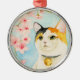 Adorno Metálico El gato de calicó lindo con rosa florece la