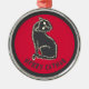 Infunde tu decoración navideña con un toque de fantasía con este metalizado adorno navideño redondo con un gato negro ligeramente espeluznante contra un atrevido fondo rojo. Las palabras 'Feliz Navidad' están grabadas debajo de un horroroso y andrajoso tipo de letra, lo que le da al adorno una atmósfera sutilmente aterradora. Ideal para los amantes de los gatos que aprecian una mezcla de lo festivo y lo misterioso, este único adorno hace un regalo perfecto que le añadirá un toque de encanto espeluznante a cualquier árbol de Navidad.