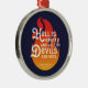 Este adorable ornamento literario presenta la cita de La tempestad de William Shakespeare "El infierno está vacío, y todos los demonios están aquí" contra un incendio naranja en un fondo azul. *Tenga en cuenta que la marca de agua Zazzle que aparece en la vista previa del zoom NO aparecerá en el producto impreso final. © Bookish y WonMart