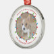 Este adorable ornamento de honor de foto de cachorro de Navidades incluye una hermosa y brillante cadena de luces de Navidad enmarcando la fotografía de su perro en un círculo festivo. Personalizar tu propio mensaje en la parte inferior de rojo para un colorido regalo de vacaciones. Personaliza la primera Navidad de tu cachorro con tu familia.
