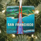 Un gran afiche vintage del puente Golden Gate de San Francisco - la puerta de entrada a los países vinícolas de Sonoma y Napa reutilizada en un adorno.