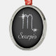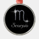 Sparkly glam round ornament presenta el símbolo zodiaco / astrológico para Scorpio en diamantes de imitación de diamantes sobre fondo negro. El signo de nacimiento de Scorpio es para los nacidos del 23 de octubre al 21 de noviembre