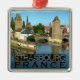 Souvenirs mostrando una icónica vista de los Ponts Couverts en Estrasburgo, Francia.