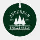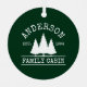 Nombre familiar Cabina Árboles de pino rústicos Ornamento Metalizado - Fondo verde forestal