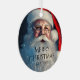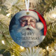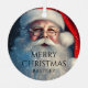 Feliz Navidad Santa Festive Winter Holiday Ornaments cuenta con Santa Claus con rociadas de nieve con el texto "Feliz Navidad" y tu nombre personalizado en el frente. Perfecto para Navidades tarjetas de felicitación de vacaciones para familia y amigos. Diseñado por © Evco Holidays www.zazzle.com/store/evcoholidays