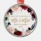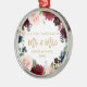 Elegante acuarela con guión dorado Borgoña Marsala y Floral azul - Nuestra primera Navidad como Sr. y Sra. Boda Ornament