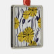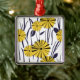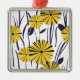 Ilustracion de estilo retro sin igual con flores amarillas y hojas azules sobre fondo blanco